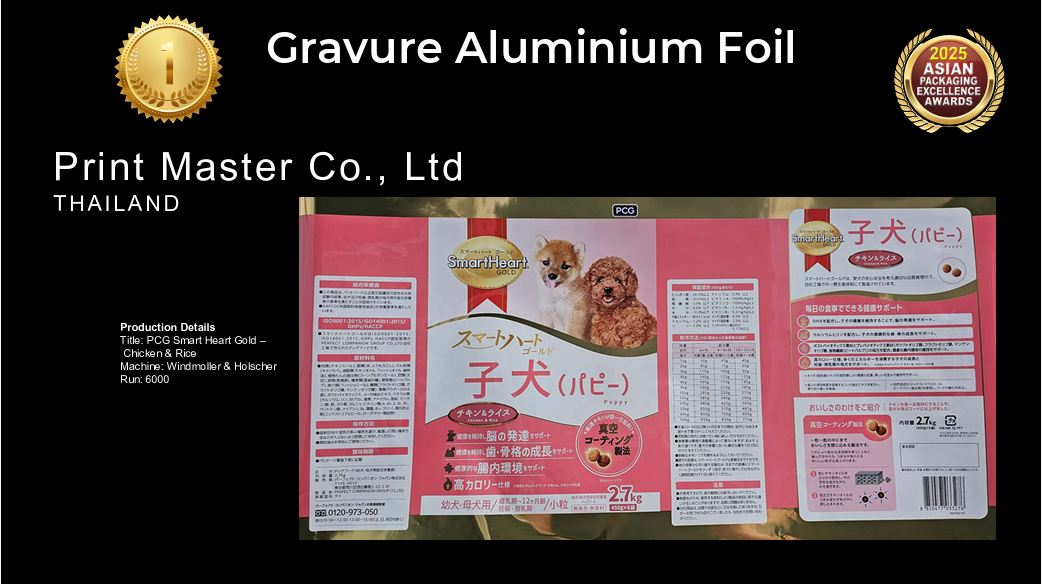 • รางวัลเหรียญทอง (Gold Award) ประเภท Gravure – Aluminium Foil