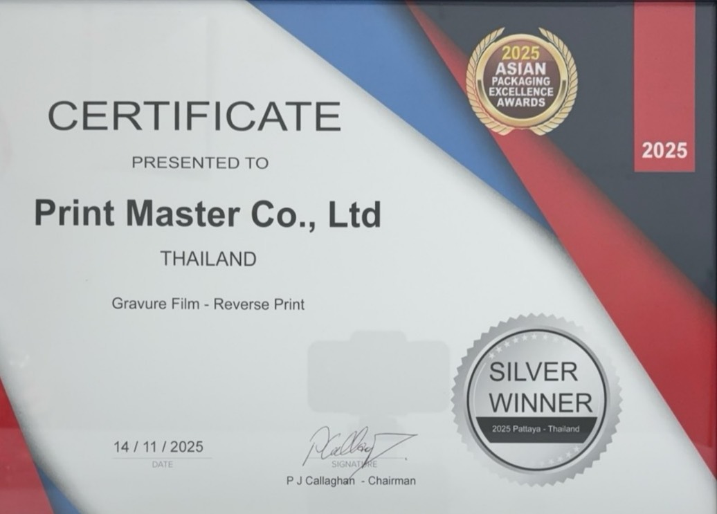 เมื่อวันที่ 14 พฤศจิกายน 2025 บริษัท บริษัท พริ้นท์ มาสเตอร์ จำกัด  ได้เข้าร่วมงาน Asian Packaging Excellence Awards 2025 ซึ่งเป็นเวทีประกวดด้านบรรจุภัณฑ์ระดับเอเชียที่มีความน่าเชื่อถือและเป็นที่ยอมรับอย่างสูง และเรารู้สึกเป็นเกียรติที่ได้รับ 2 รางวัลสำคัญ ดังนี้: